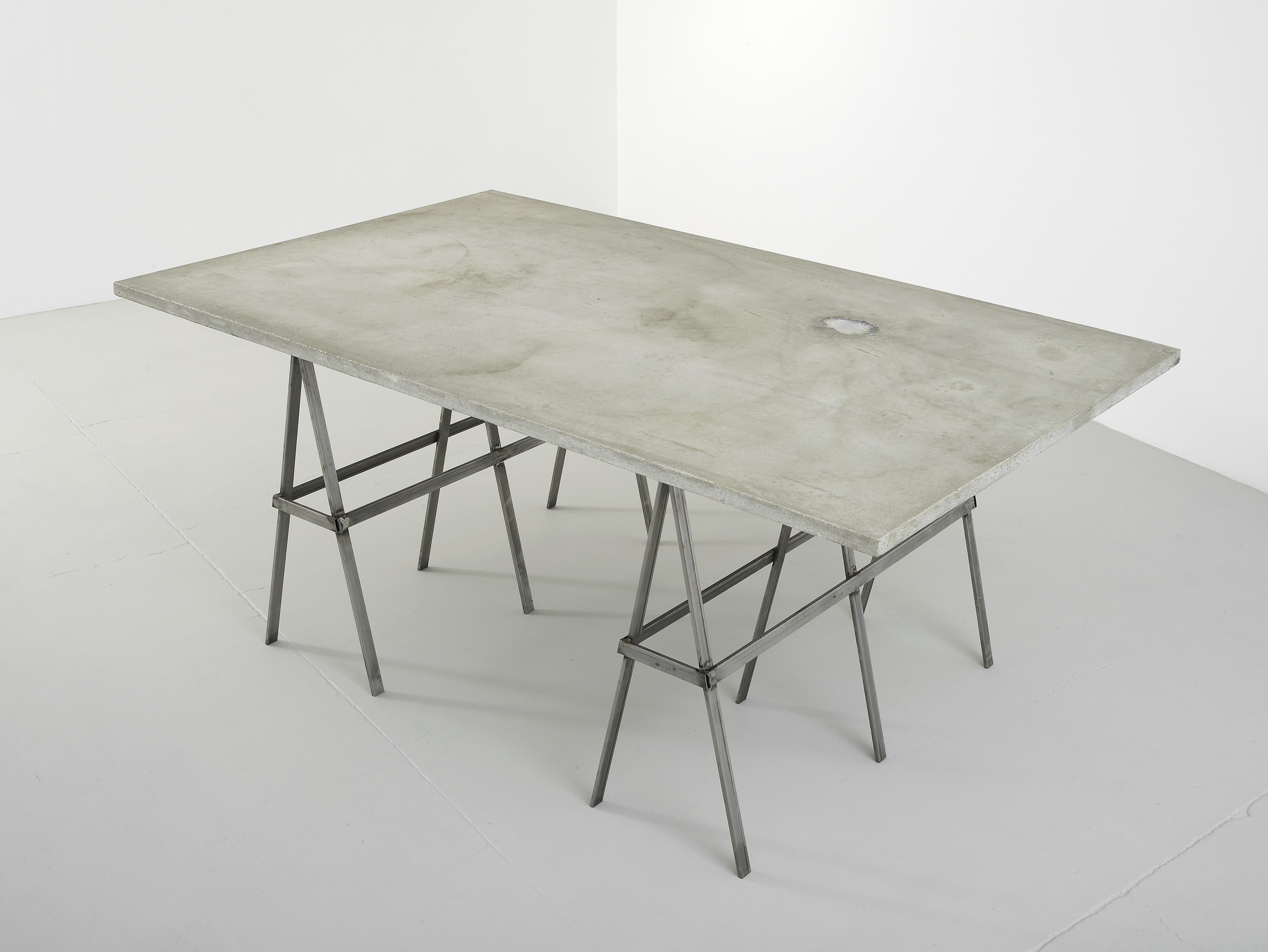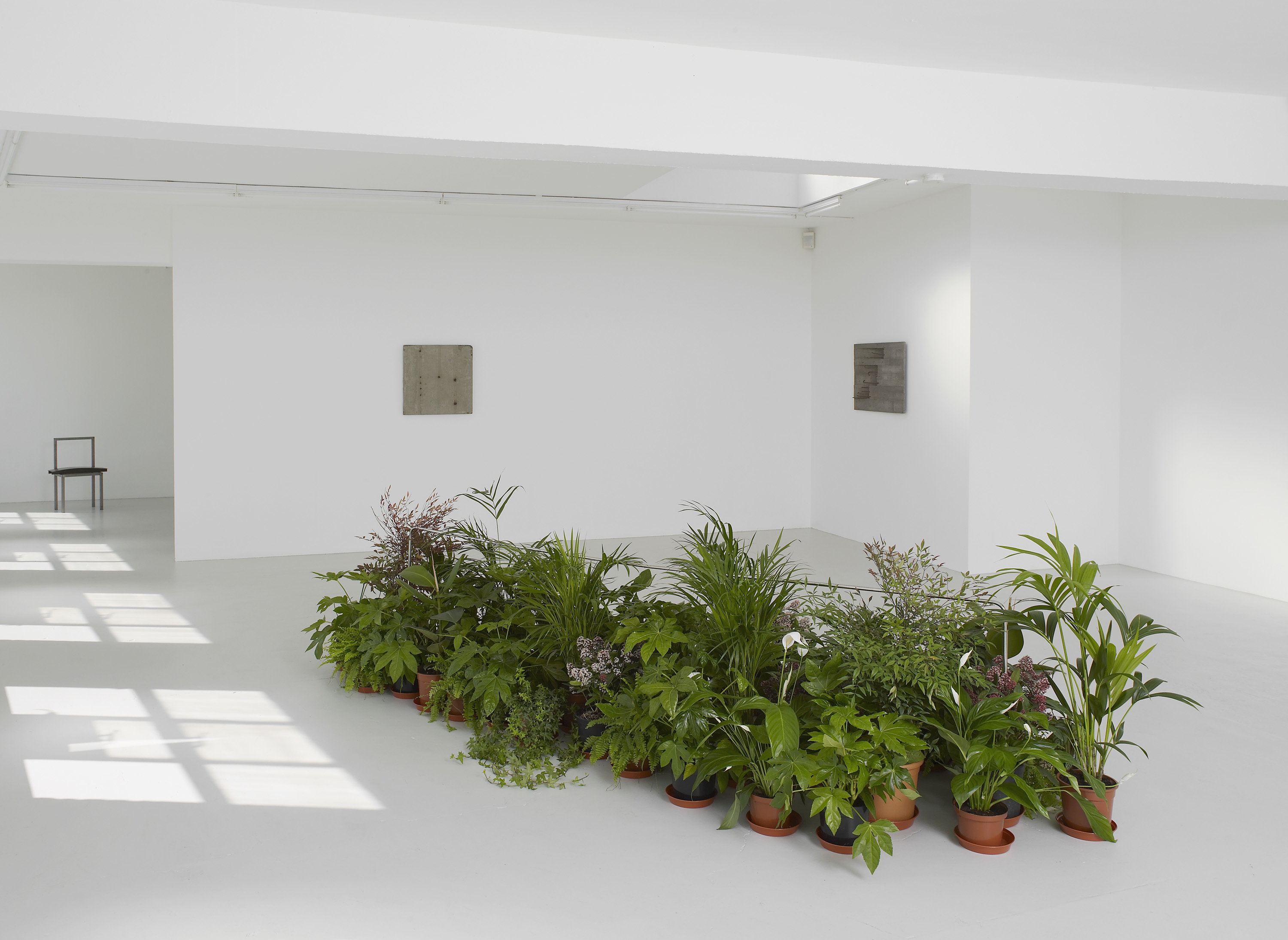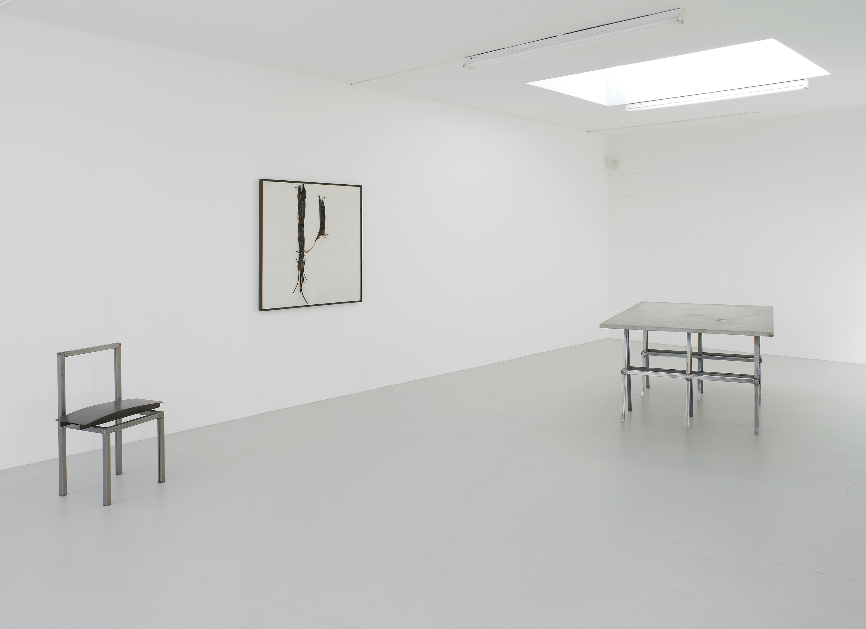 The expository project suggests a reconsideration of the act of removal which the photographer declares he is carrying out. The cancellation, or the simple omission, of what is regarded as superfluous, secondary or merely descriptive -the dormitory’s occupants are not present in the image- prompts the rediscovery of the objecthood of the image to the point of an abstract-like exacerbation. This kind of reflection creates an affinity with the intention to reconsider the frame as a sculptural body. By removing any trace of pictorialism, Giuseppe Uncini’s reinforced cement surfaces are reduced to the primary essentialness of the material used. The Cementarmati, in the total nakedness of their material being, nevertheless reintroduce, together with the indistinct monochrome surface, the trace and remnant of a structural and compositional linguistic sign of sculpture. The round iron rods call to mind the constructive sense of the work, and take on the significance of a mental and poetic trace.