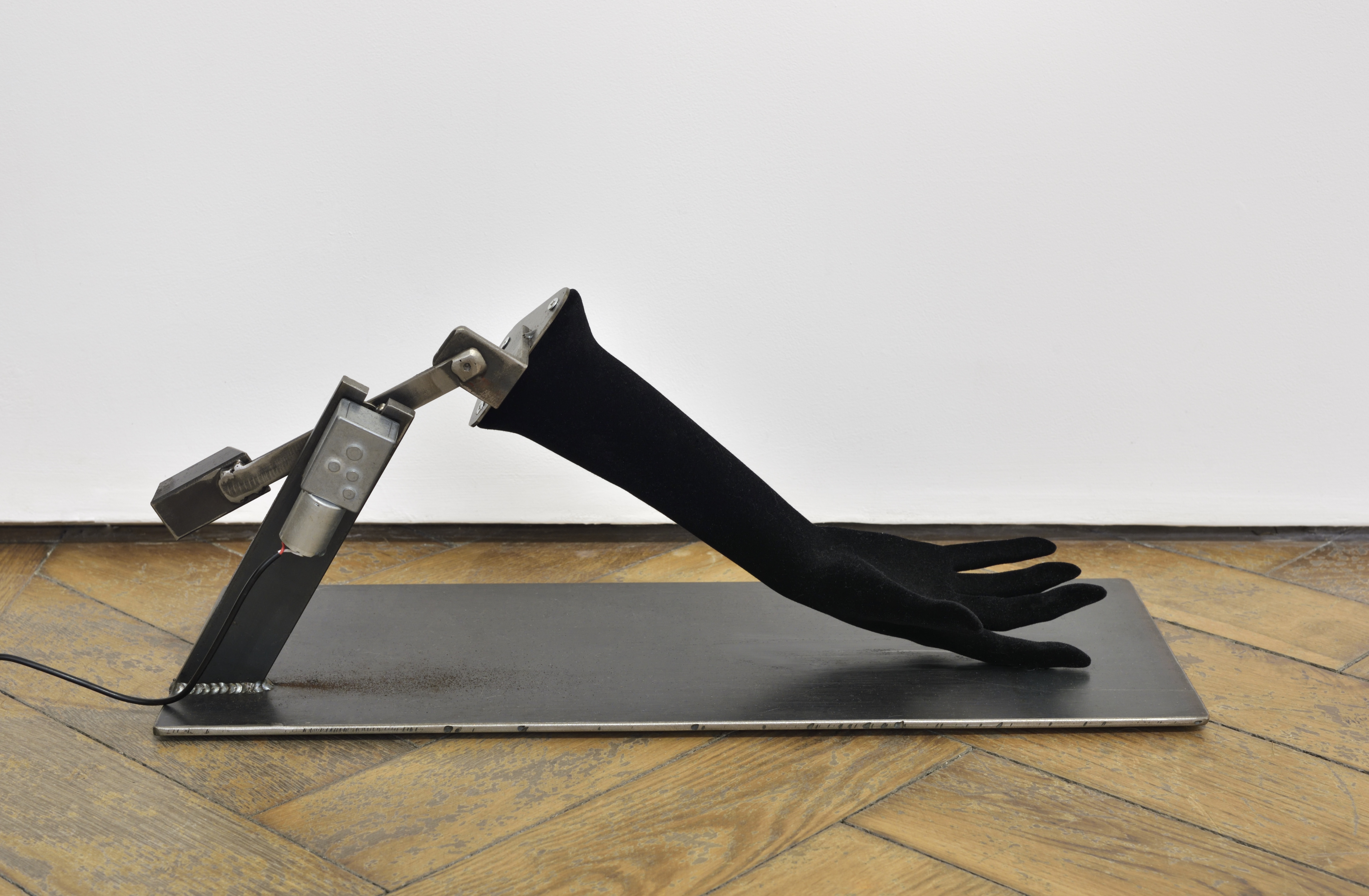 Echoing the design of the cabinet, DEMONSTRATIONSRAUM is a sculpture intended to be worn and thus interact with the viewer's body. Anna Franceschini reverses the roles between artwork and exhibition space by turning the monstration device into an artwork.