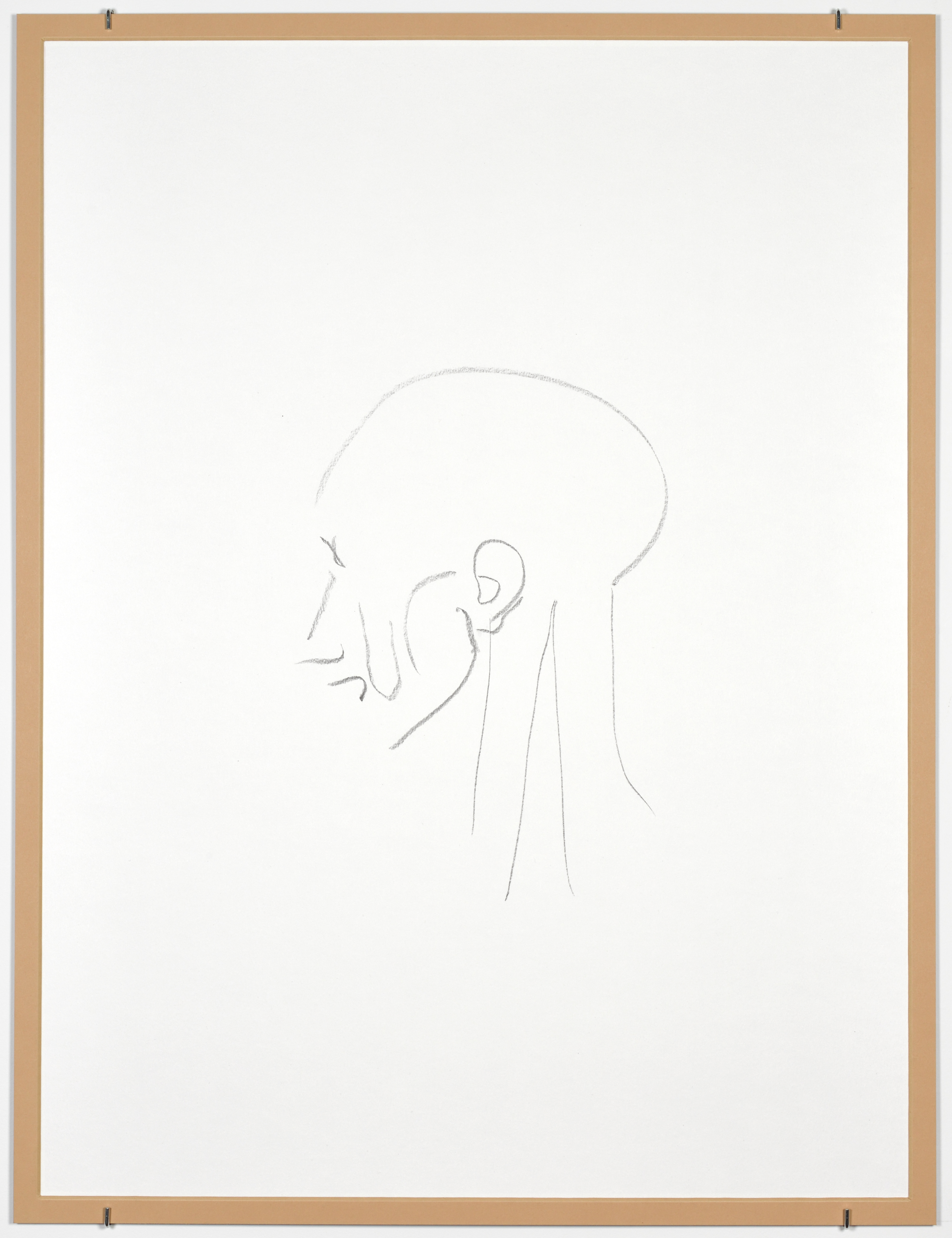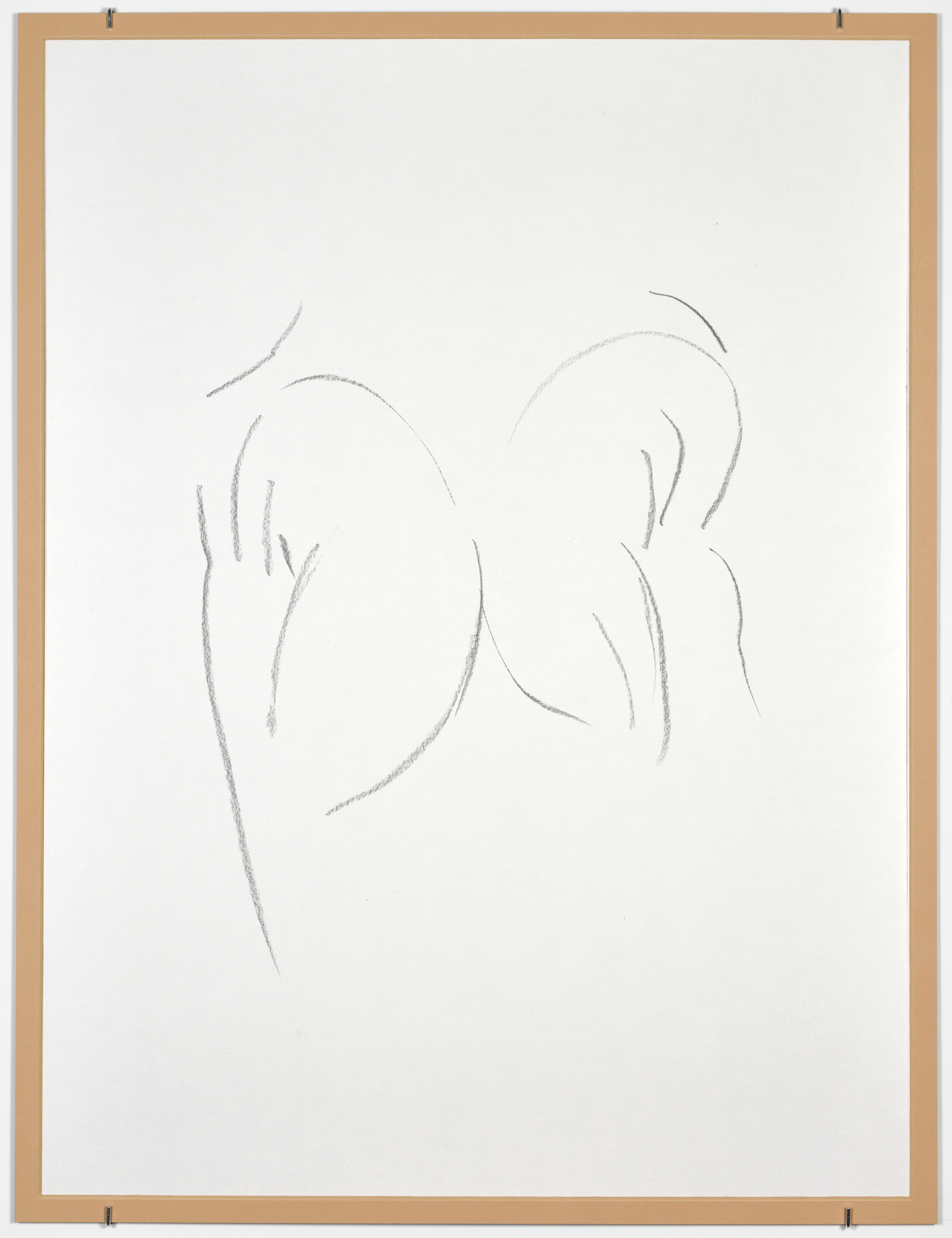 Thompson executed his drawings on a table equipped with touch sensors that precisely measures ten seconds of “touch time”, a process that resonates with the manufacturing term “takt-time”, the amount of time a manufacturer must spend per unit to produce enough goods to fulfil customer demand. Reproducing a situation of near total surveillance from within contemporary logics of labor management, the artist set out to study the sculpture l’Écorché by Jean-Antoine Houdon (1766). This sculpture depicts a classical figure in a contrapposto pose, with the skin removed. An ambiguous figure of both over-exposure and insensitivity, it is still prized for its role as a tool to train the hand and eye to transcend the world of appearances and mere copying into one of knowledge-production. Here, parameterised and subsumed, this knowledge produces a wealth of questionable value, intermingled as it is with the swipes of thumbs that draw us into increasingly precise calculability.