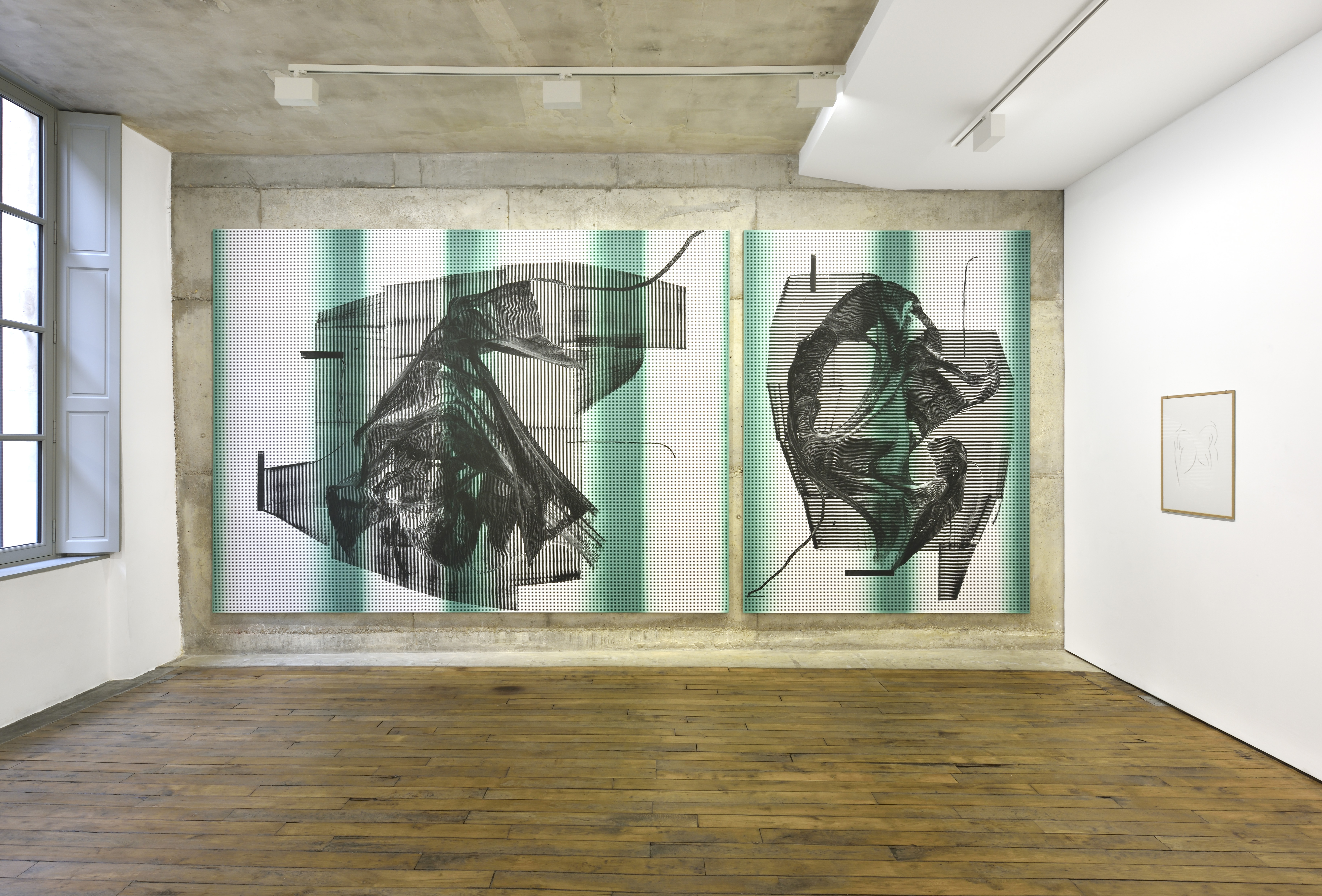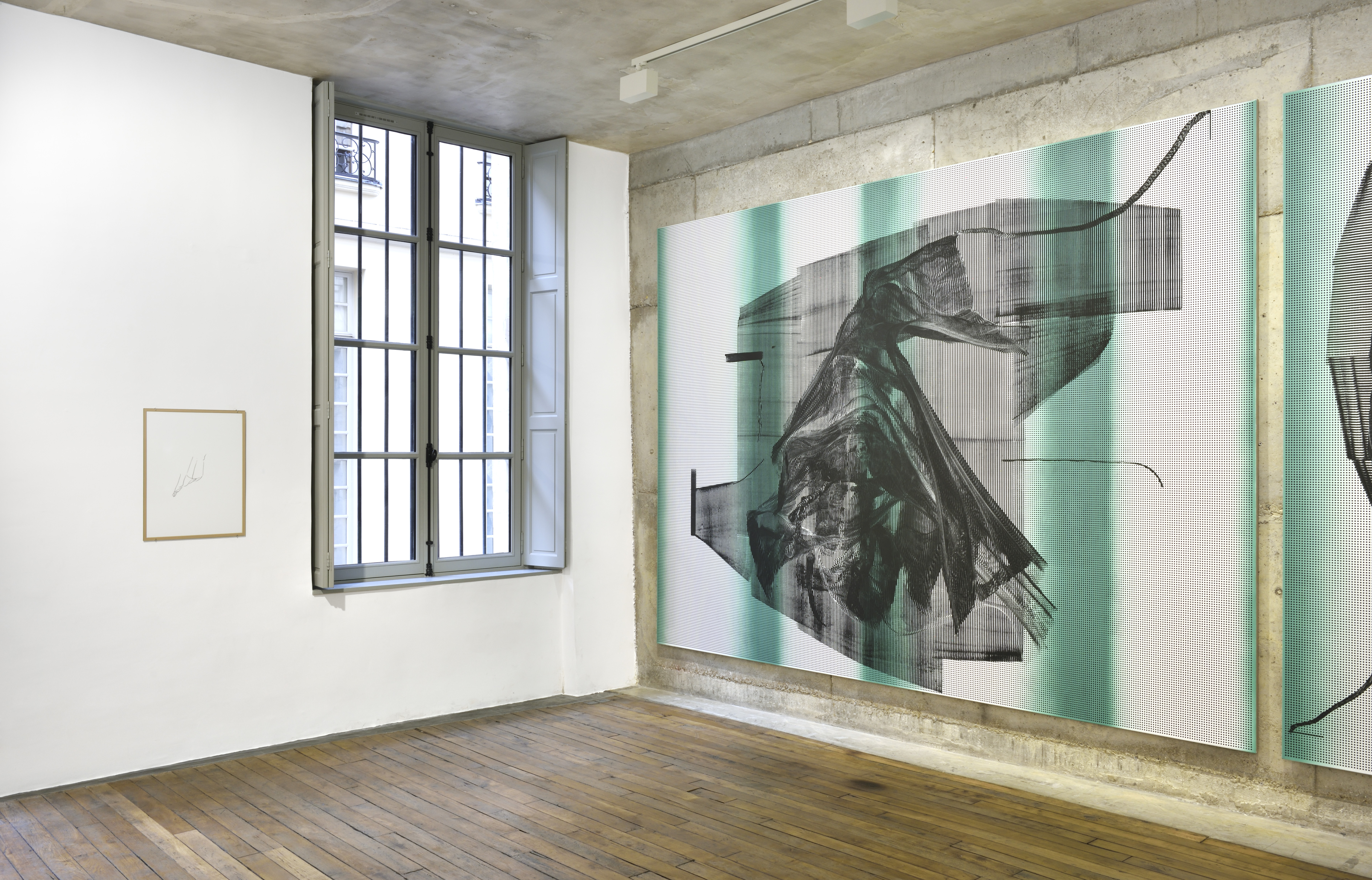 Campoli Presti is pleased to announce L’écorché, Cheyney Thompson’s seventh solo exhibition with the gallery. The display features works from his latest Displacement series and a set of drawings whose installation is bound to the specific dimensions of the Paris exhibition space. The works are the result of a recording procedure that captures the interaction between a set of tools and their touch-sensitive surface.