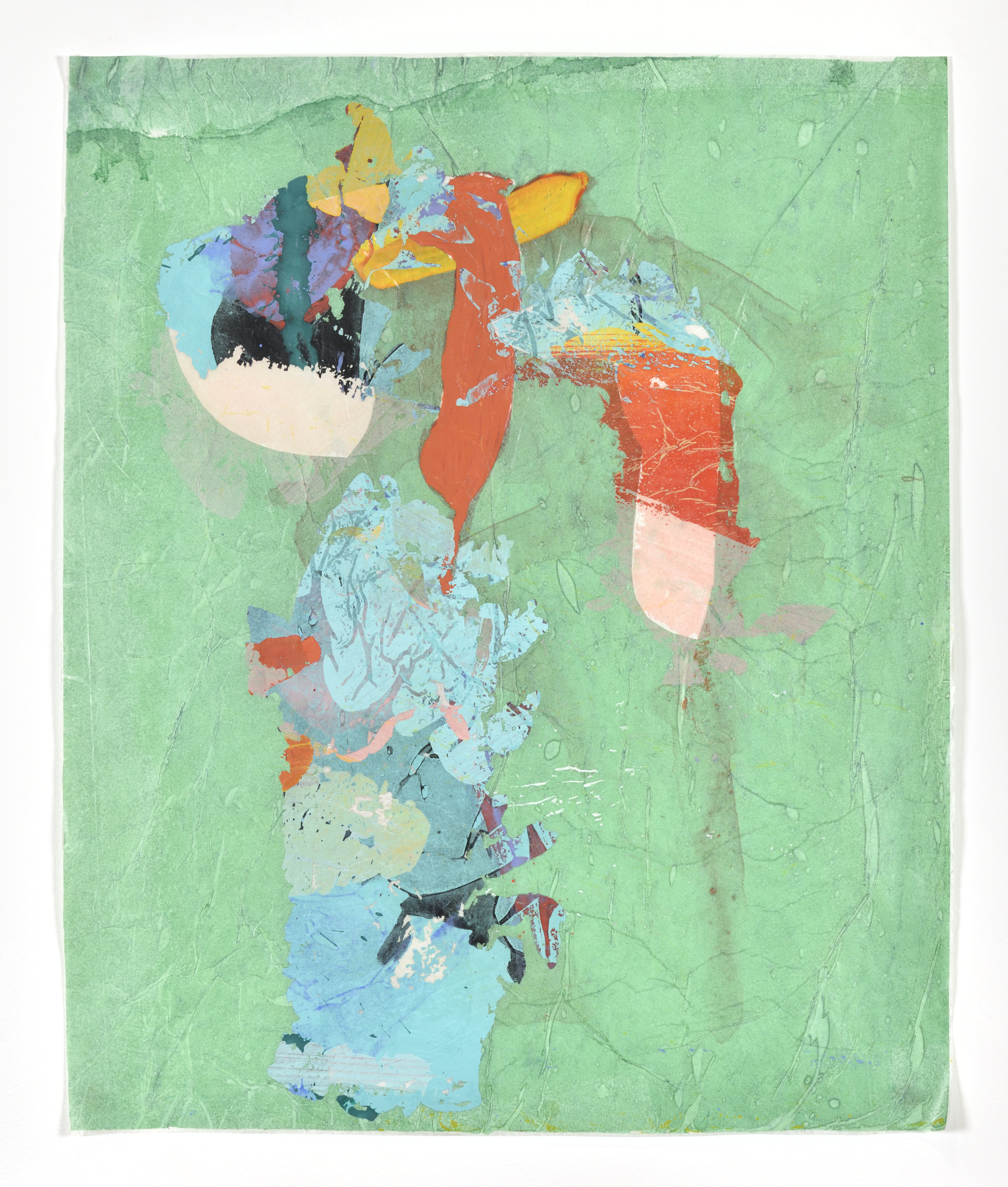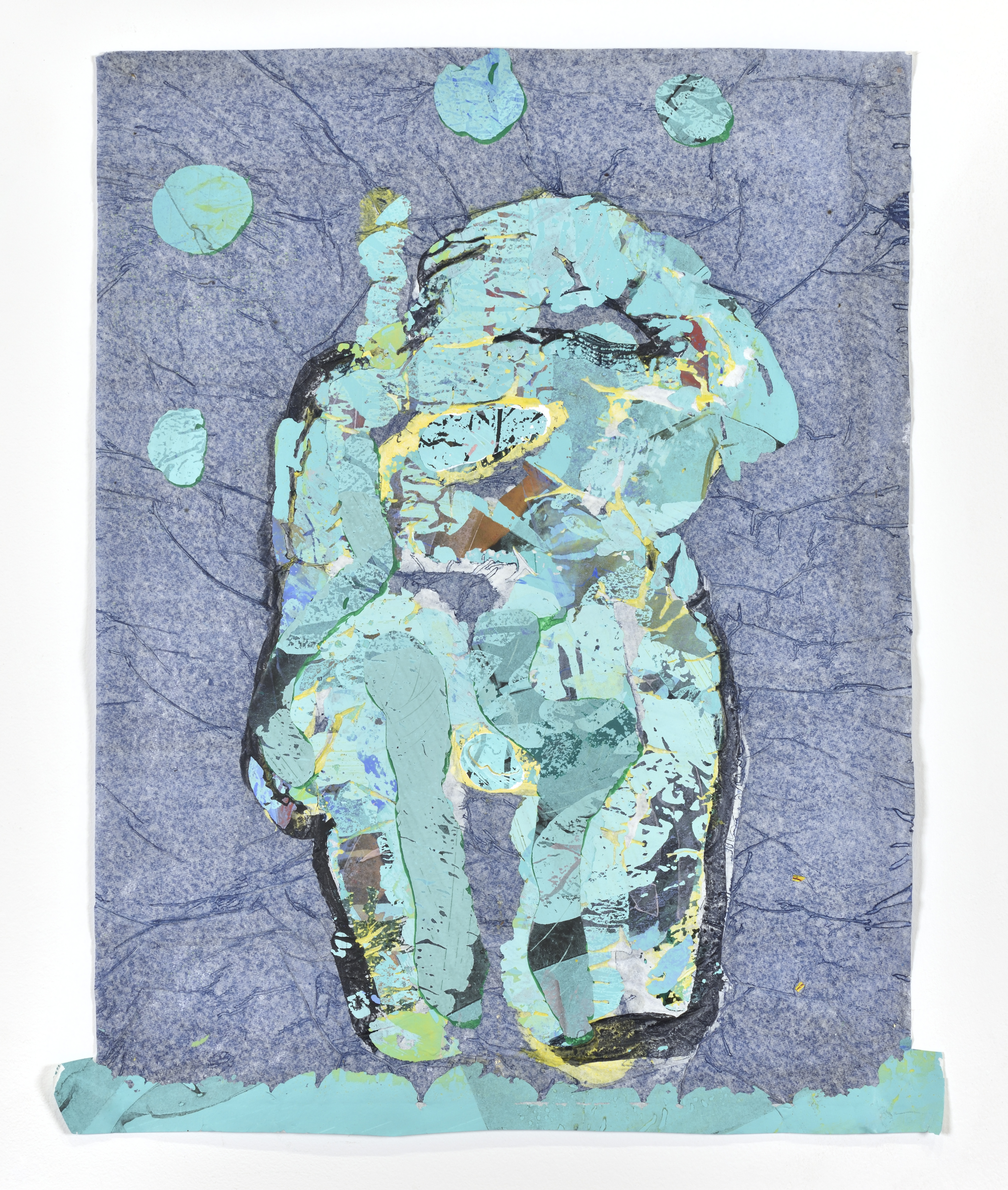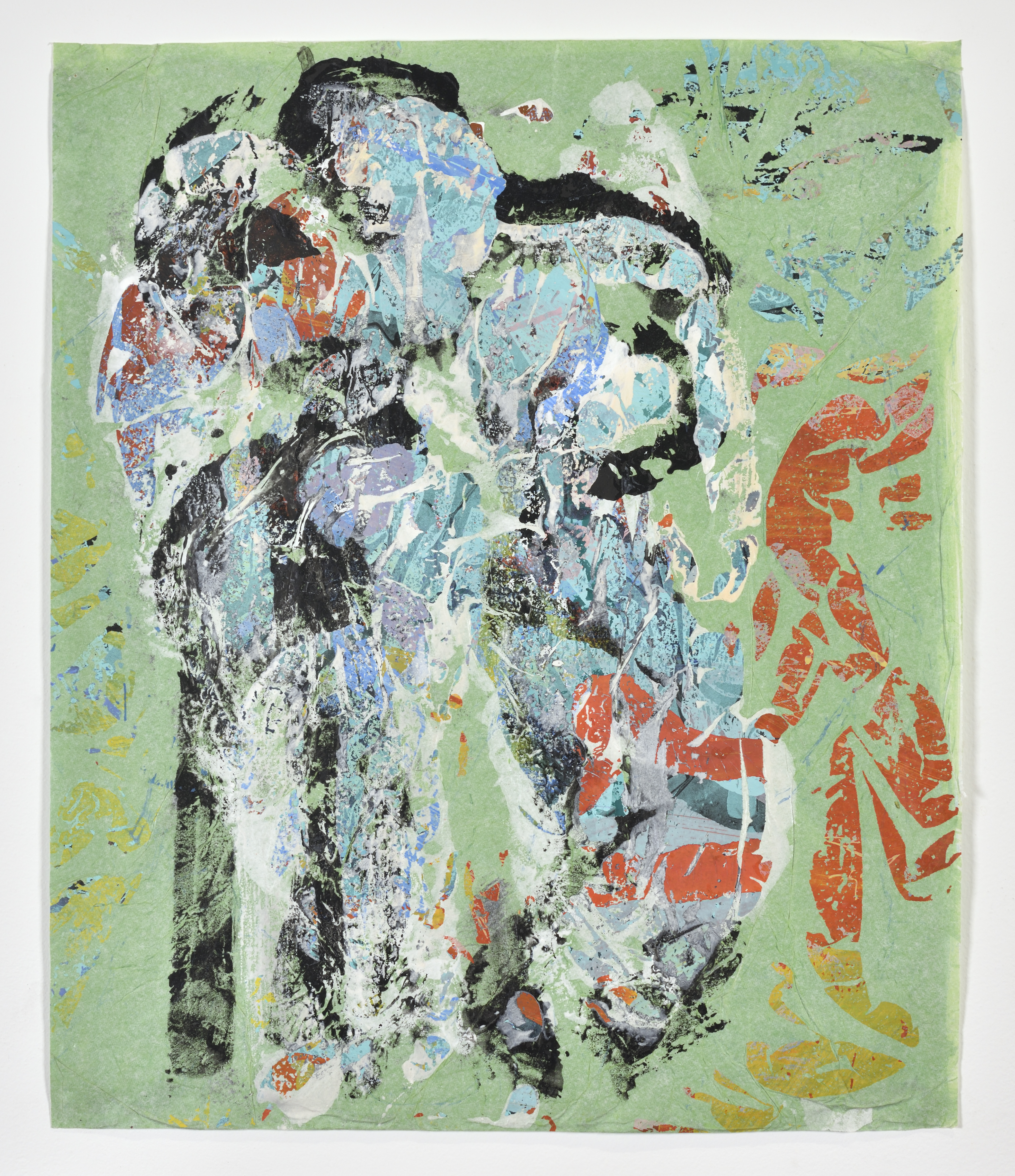 The use of transparent and porous materials such as tissue paper registers each step of the process, from the application of glue to the juxtaposition of layers, turning the work into a double-sided body.