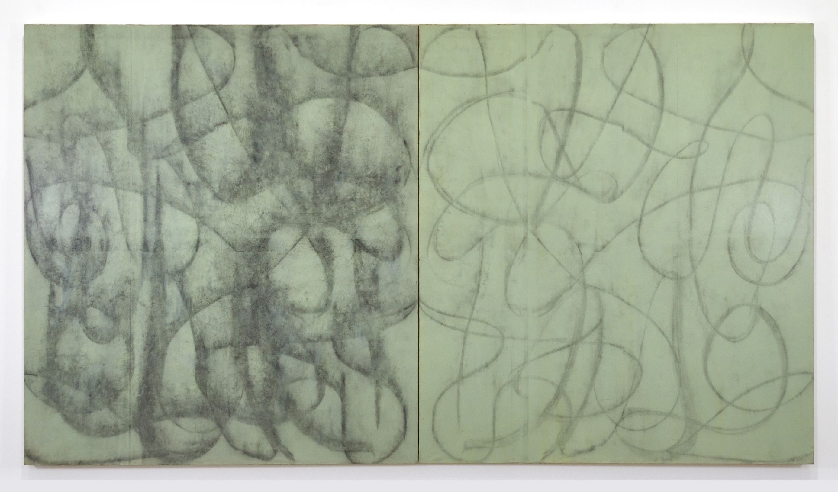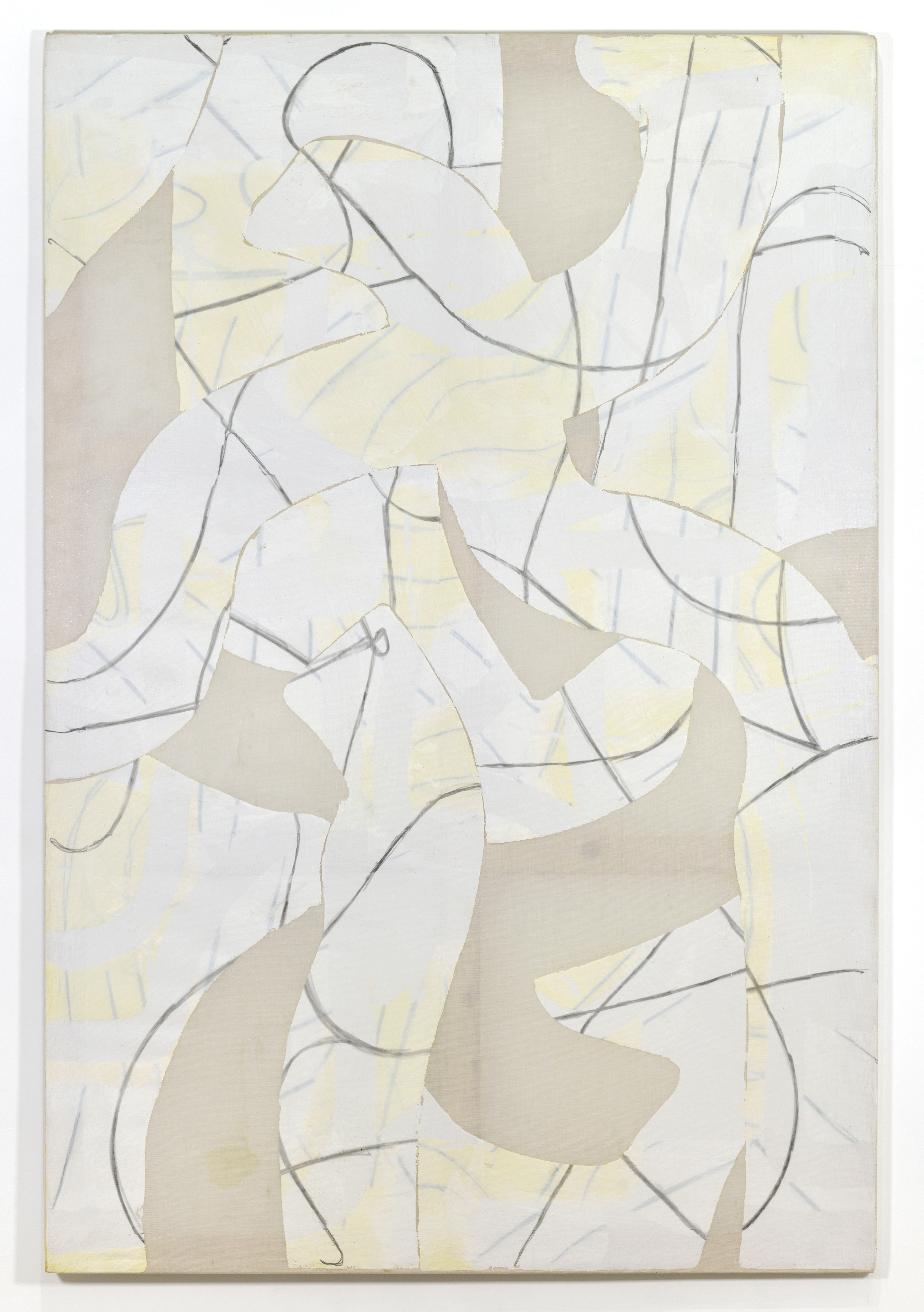 Babel III (1979) uses tarlatan, white paint and graphite to achieve transparency and reveal the processes behind its making: rotation, drying time, and a continuous repetition of steps.