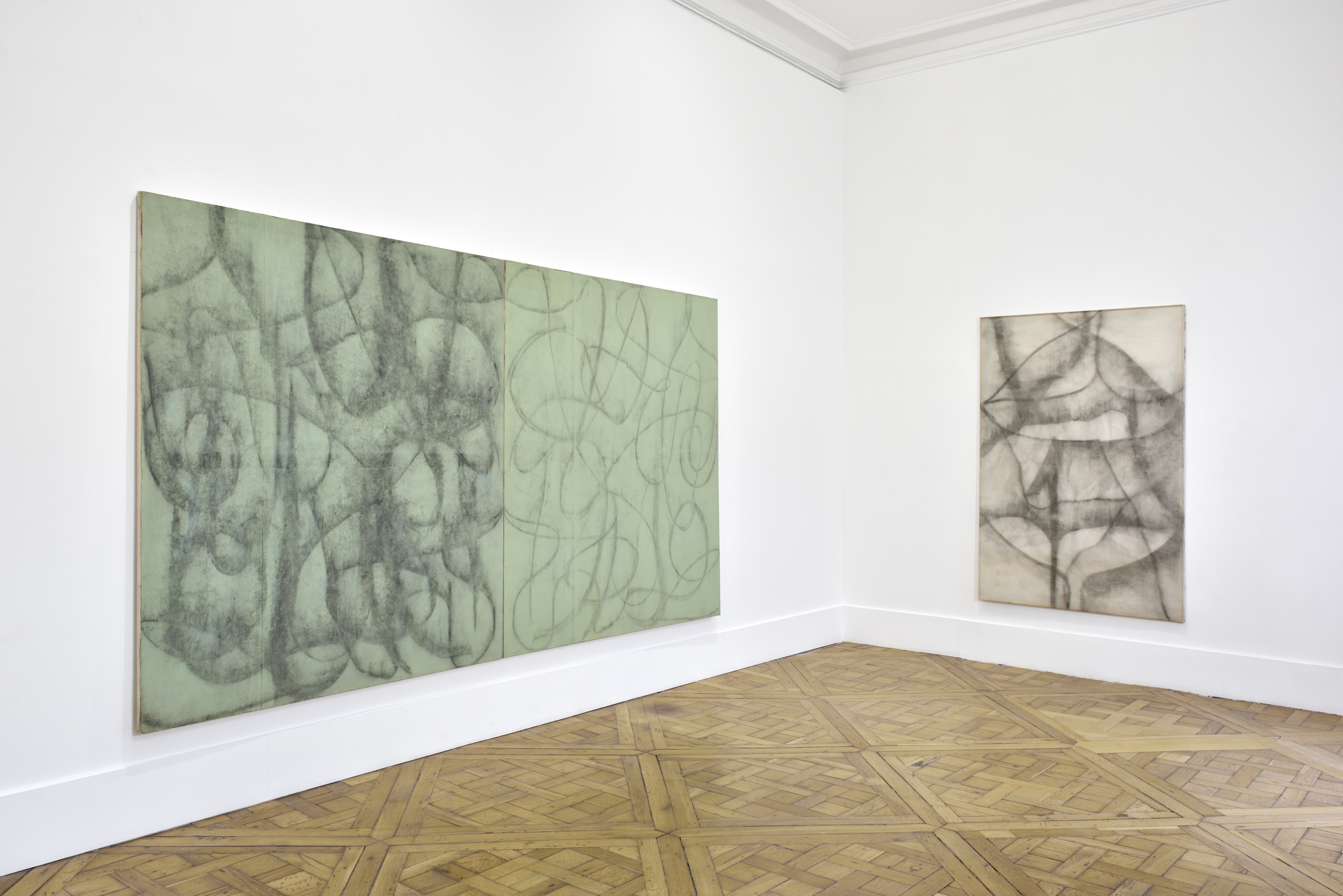The ground floor of the gallery presents recent works from the artist's “Dos” (Back) series which emerged from Matisse’s bas-relief sculptures of the same name. The shape of the back nude is however secondary to what Bonnefoi places in the process of reversing, converting and transferring positions and materials. It is not a question of going back to figuration but of using a particular image that proves the migration of pictorial elements, their ability to combine and divide themselves.