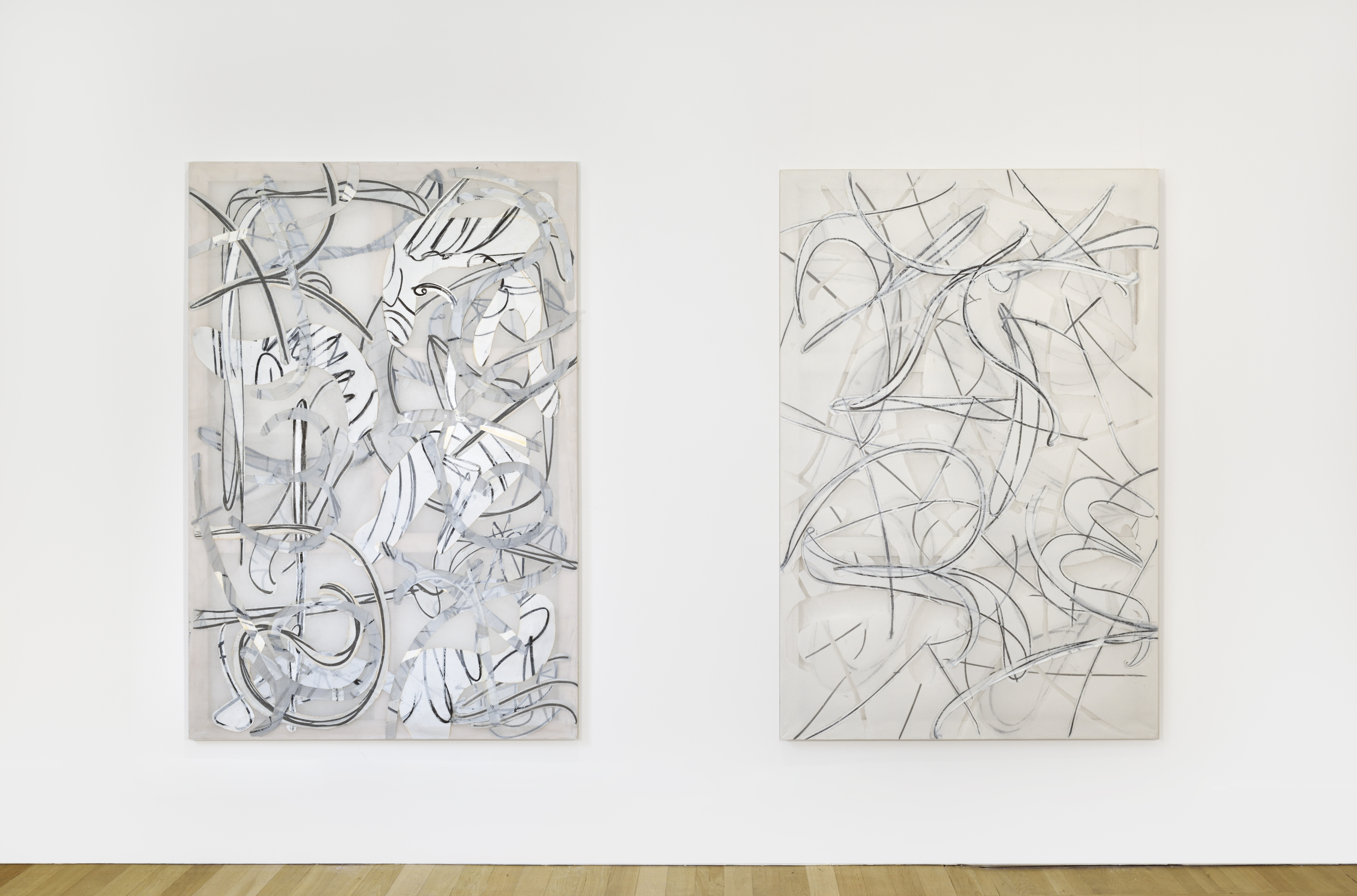 EnquireIn his more recent paintings from the series, Bonnefoi explores further manipulations of the tarlatan, a sheer, open-weaved fabric applied in varying volumes, allowing the surface to reveal different levels of visibility.