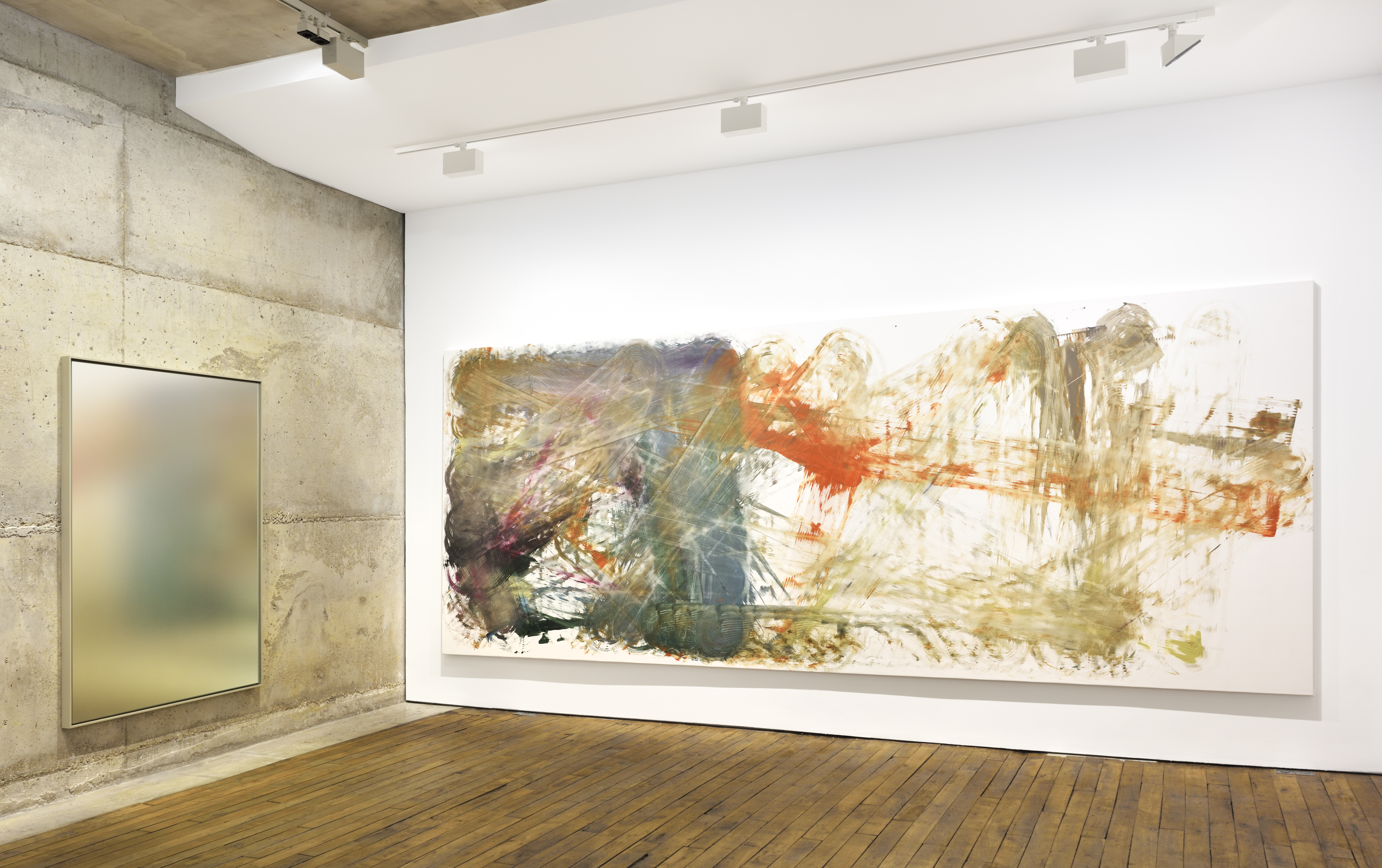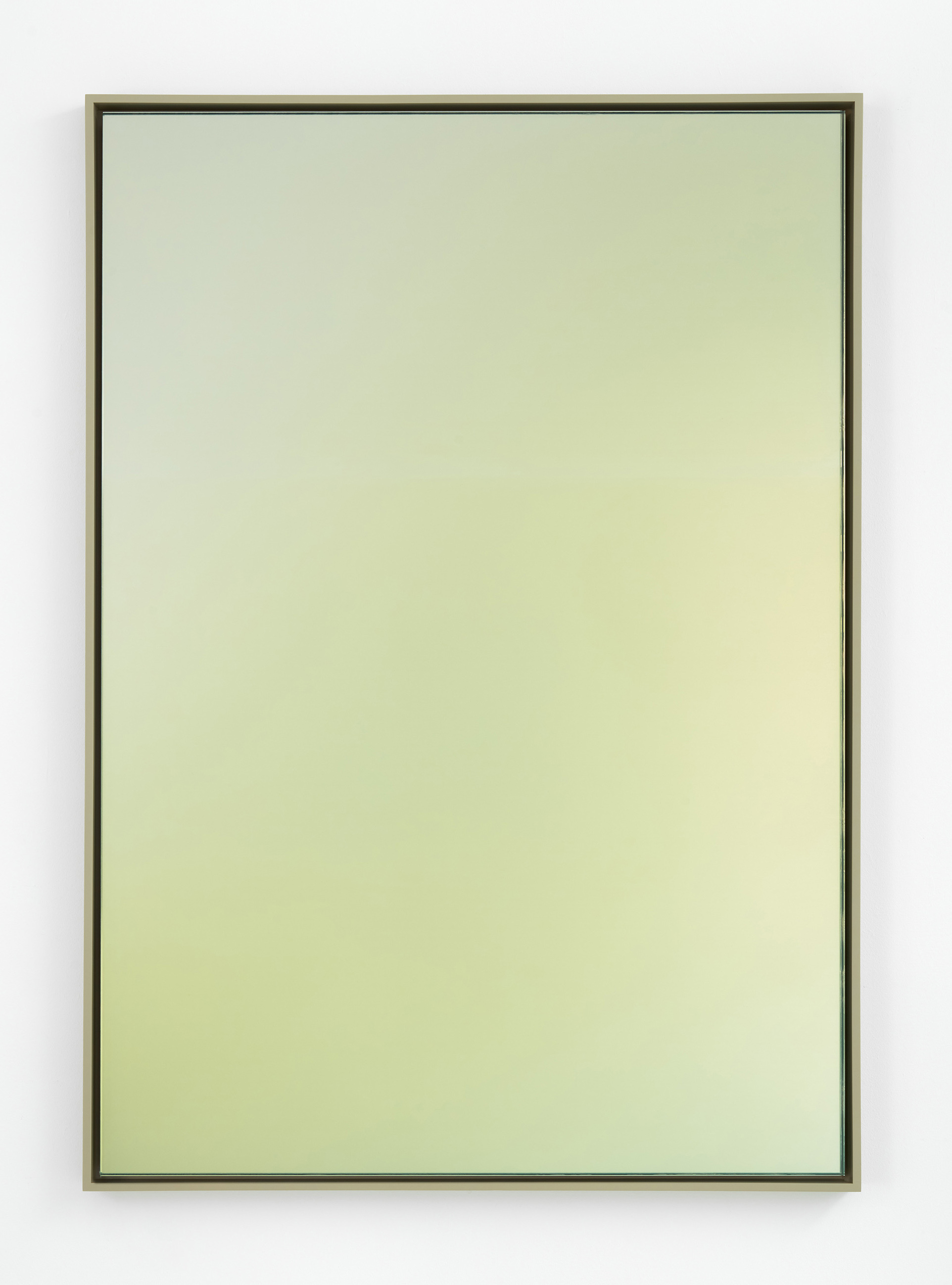 Scott Lyall’s series of modulated mirrors titled Talent are made of glass, printing ink, and a hand-mixed paint composition of varnish and gold nano-particles that reduce the mirror’s reflective quality. For Scott Lyall the use of gold introduces a surprising fugitivity: because of the intimate scale of nano-particles, a quantity of the gold is absorbed into the pores of Lyall's hands as he rubs it into the mirror's façade. It is as if the painted surface was divided on a scale between a world-reflecting image and an adventure of embodiment.