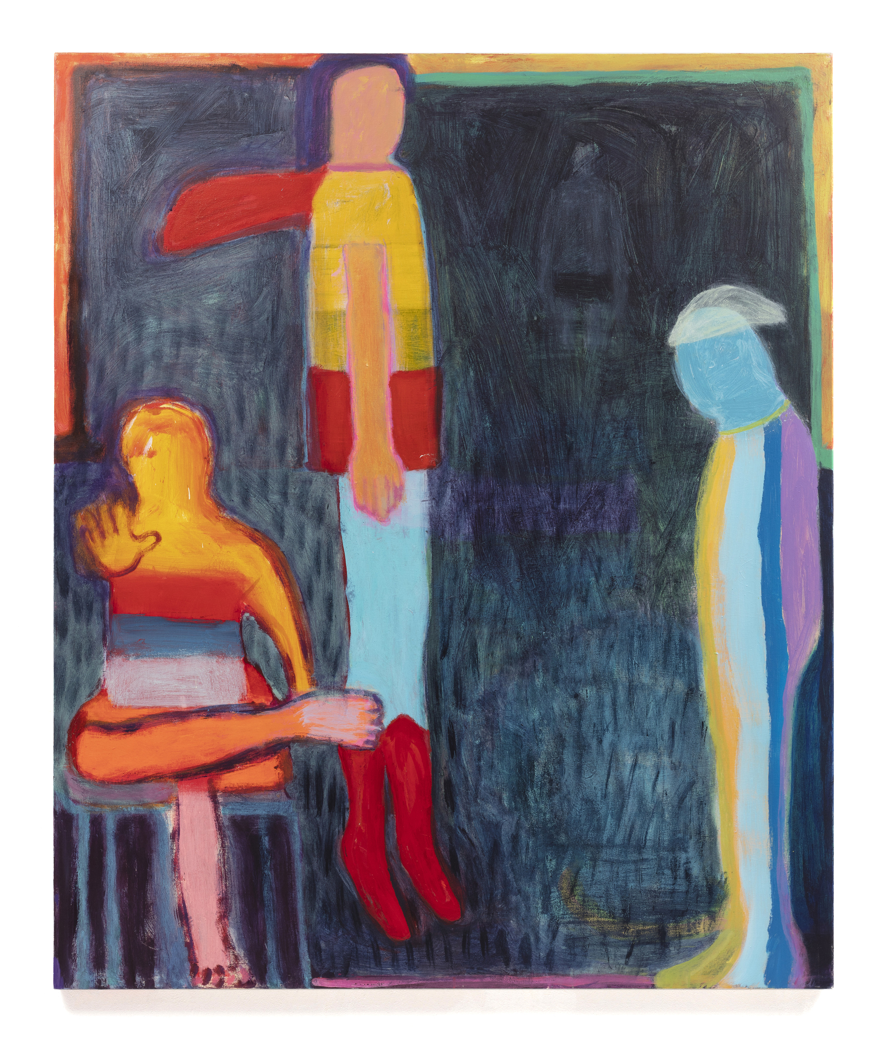 John Miller’s Pedestrian paintings are derived from his photo series, The Middle of the Day – a project he began in 1994, in which he captures images between the hours of 12 and 2 pm. Here most individuals are unaware of the camera, generating an ambient or multi-directional attention, as opposed to the glorified self-image exhibited daily in social media. The groups Miller depicts resist idealization, in part because their interactions unfold indifferent to the aims of production and utility.
