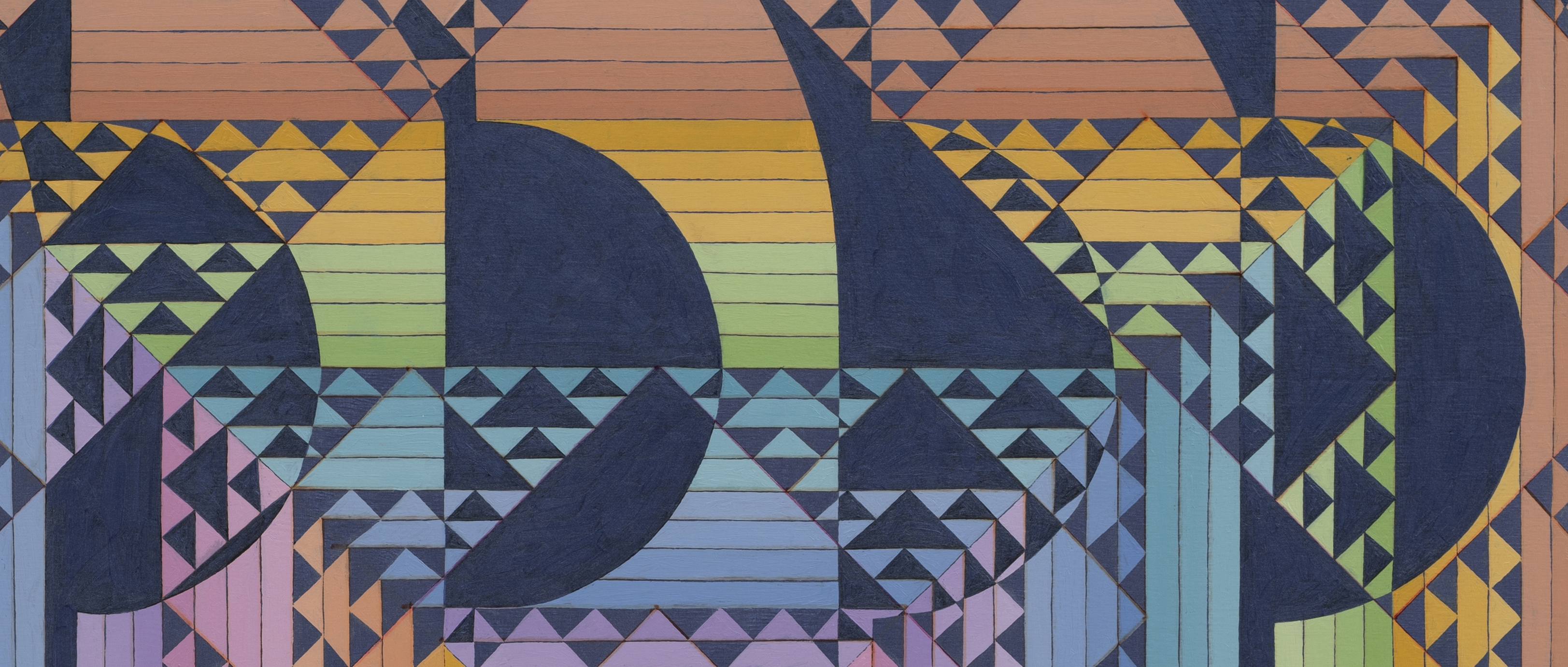 Xylor Jane's explores vast textural and chromatic ranges, orchestrating intensely intricate paintings that reference numerical, time-based, and other patterned systems. Her personal writing systems measure different periods of her life, unpacking the artist’s fascination with time in a vast spectrum of colors. While generated with often esoteric mathematical prompts, they deliver powerful emotional experiences.