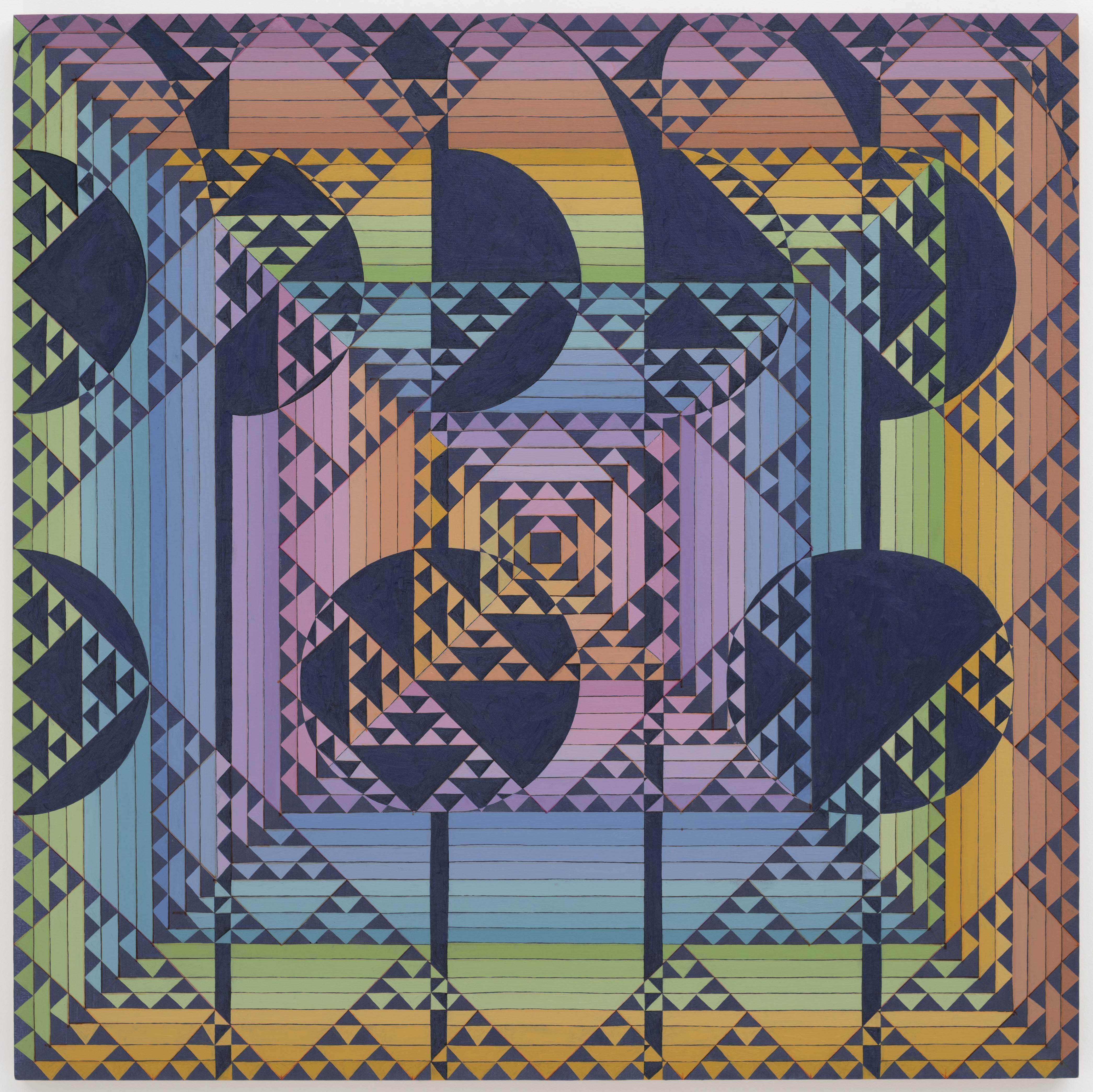 Rochelle Feinstein (b. 1947) lives and works in New York. A major survey exhibition of Feinstein’s work was shown at the Centre d’Art Contemporain, Geneva (2016), and subsequently travelled to Städtische Galerie in Lenbachhaus, Munich (2016), Kestnergesellschaft, Hannover (2017), and the Bronx Museum of the Arts, New York (2018-2019). Past solo exhibitions include Kunsthaus Baselland (2018) and the Radcliffe Institute for Advanced Study, Harvard University (2012). The artist was included in the 2014 Whitney Biennial at the Whitney Museum of American Art, New York.