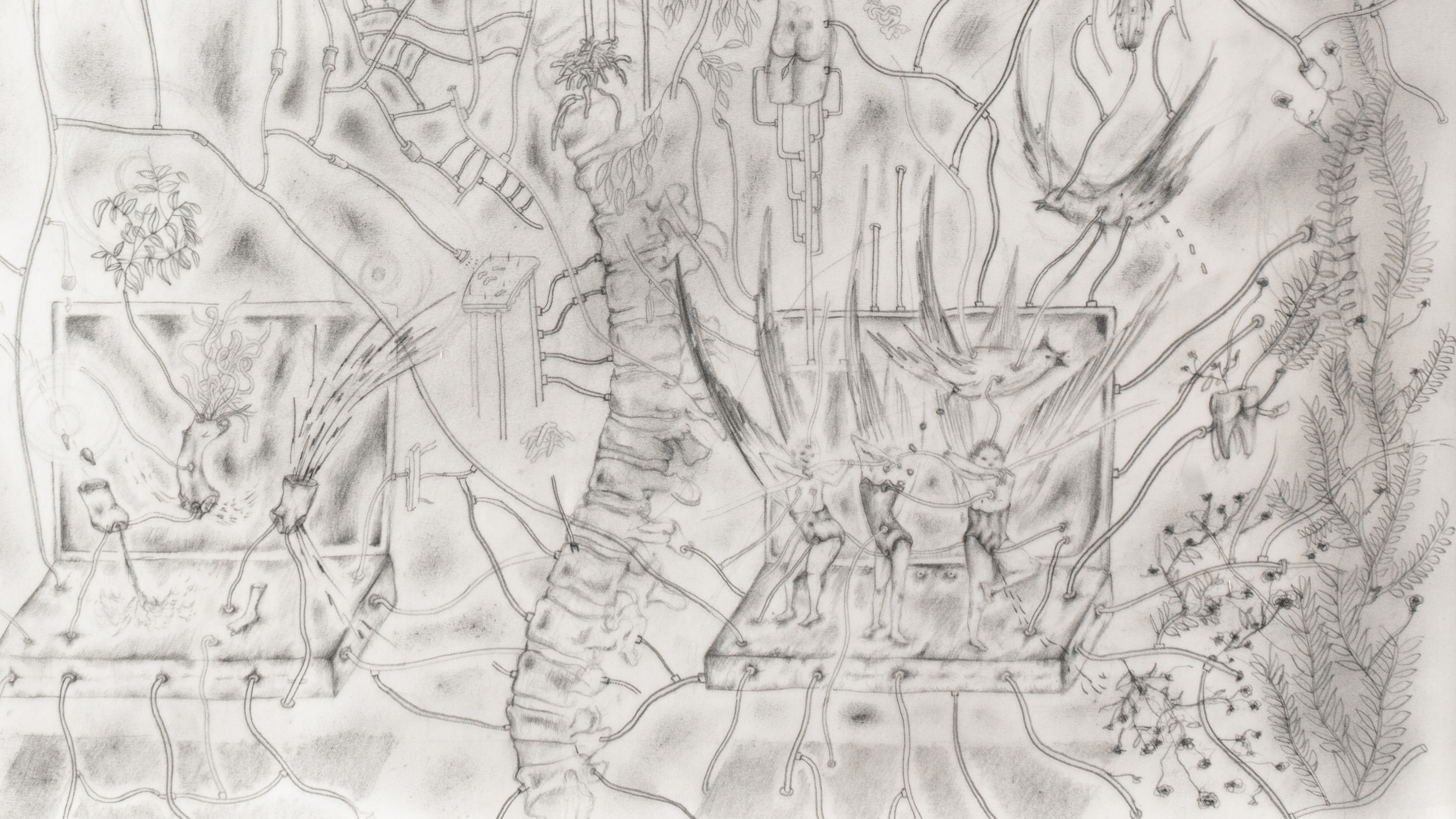 Wire mesh, plaster, pencil, acrylic, charcoal