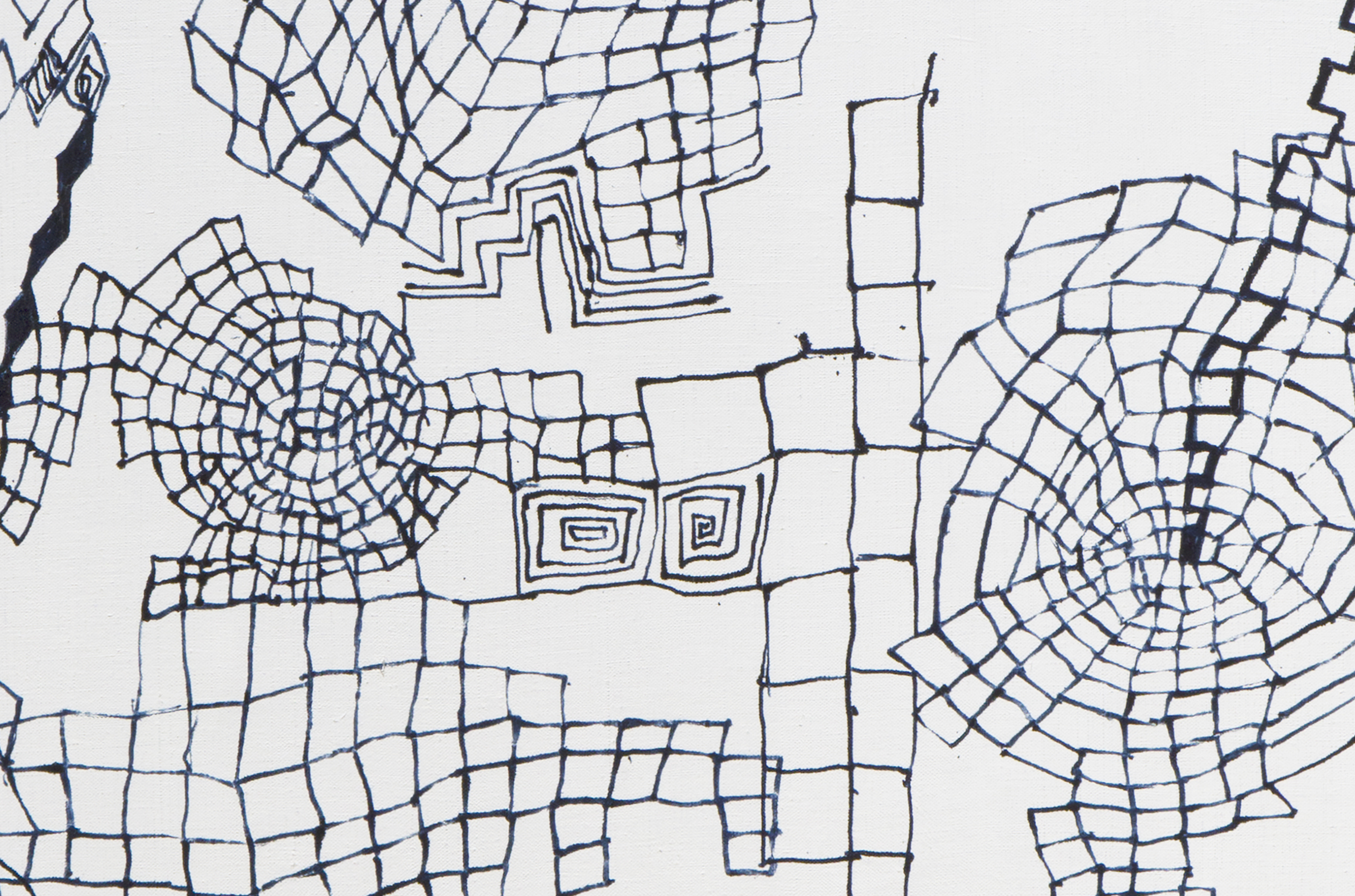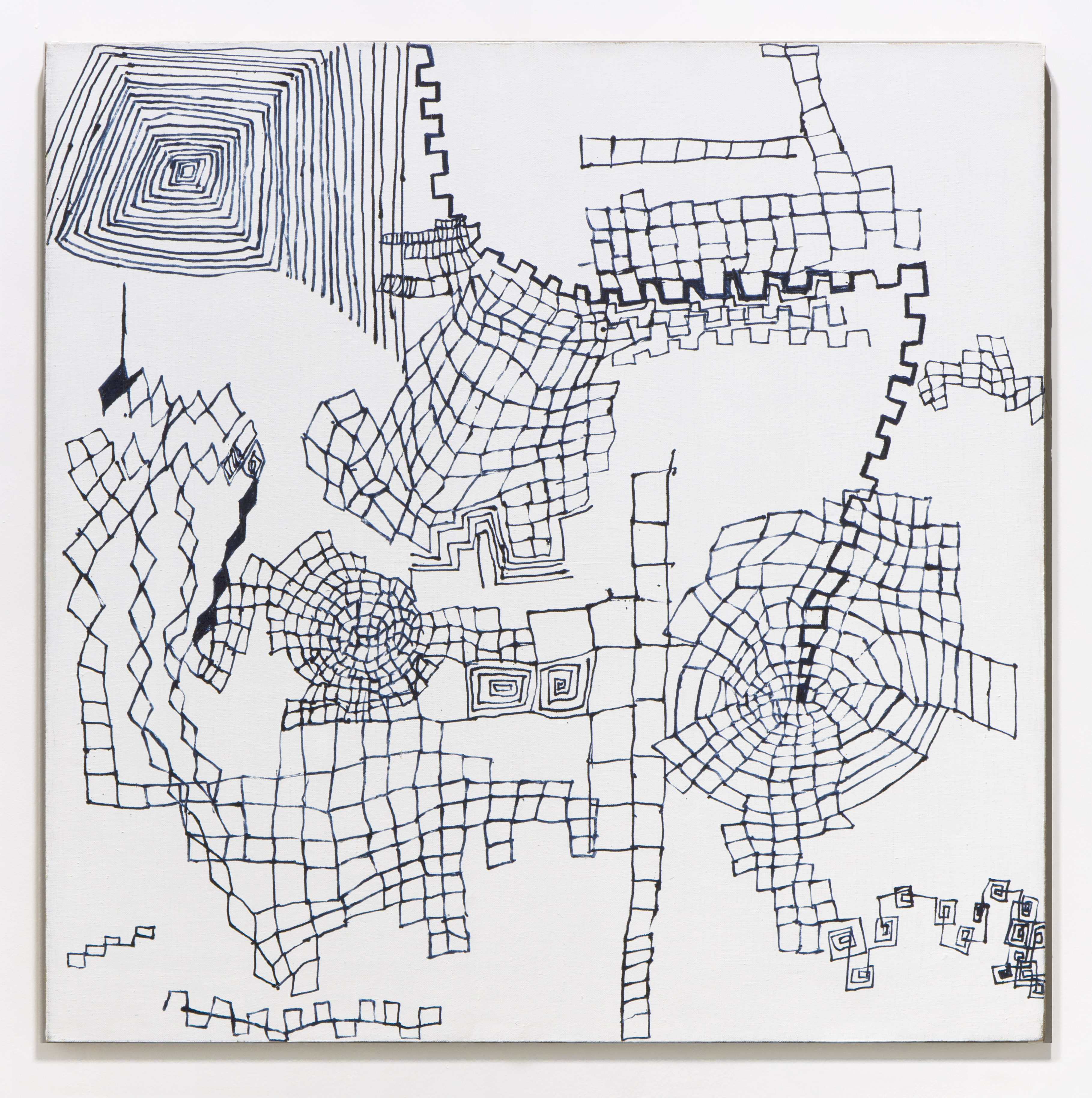 Having a Wonderful Time’s lines are the result of doodling sessions of the duration of different phone conversations, turning the grid into a woven, unpremeditated, hand-made abstraction.