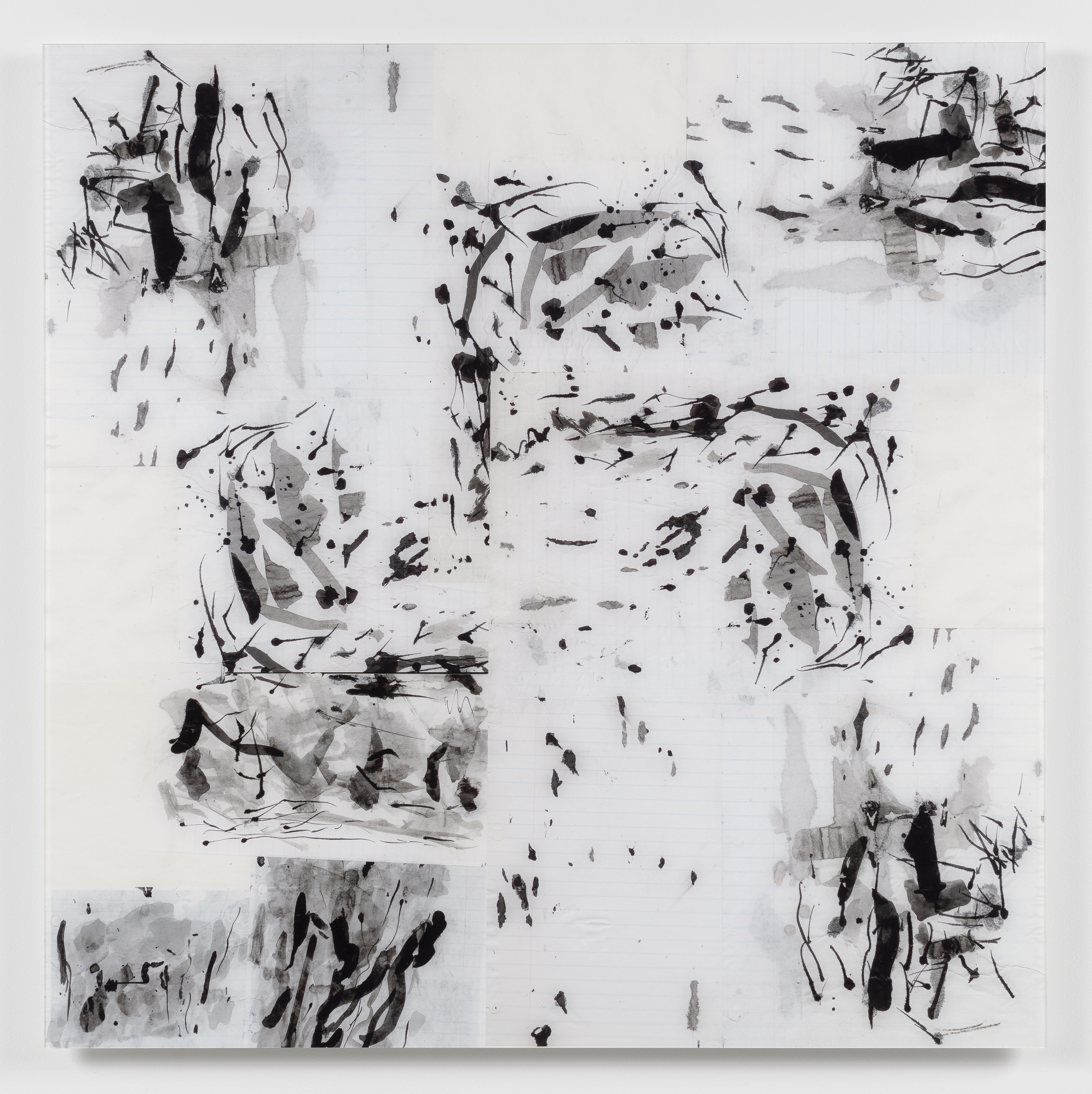 Challenging conditions, such as the absence of touch, are suggested in Wonderful Touch, a group of works which magnify the contrast between what seems to be expressive, immediate gestures and the impossibility to have access to them. All solemn connotations around performative “mark-making” are removed by showing the stains left by the brush as excess ink is wiped off. Instead of the motif, Feinstein focuses on the pressure executed around these constrained, scanned and printed marks, layered and left behind in different printing processes.